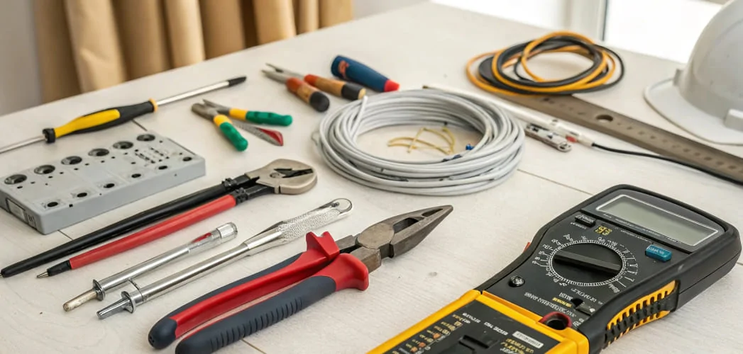 Определитесь с тем, какие инструменты и какое количество монтажного материала вам понадобится. При подсчете расходников ориентируйтесь на составленную схему. Подбирайте материалы с учетом нагрузки, способа монтажа проводки, последующей декоративной отделки.