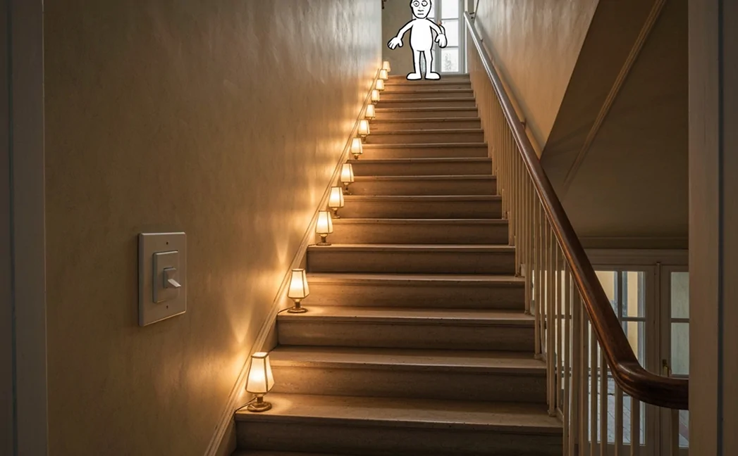Лестничные пролеты — классика жанра. Включил свет внизу, поднялся наверх, выключил. Никаких блужданий в темноте по ступенькам.