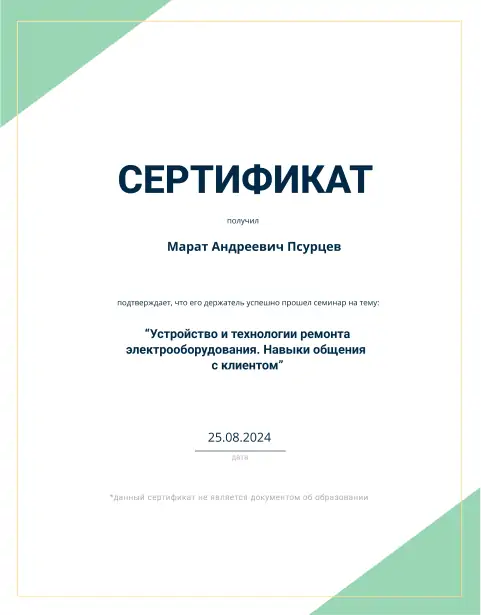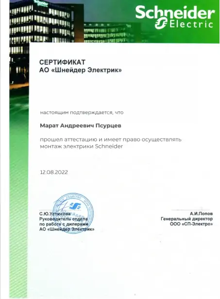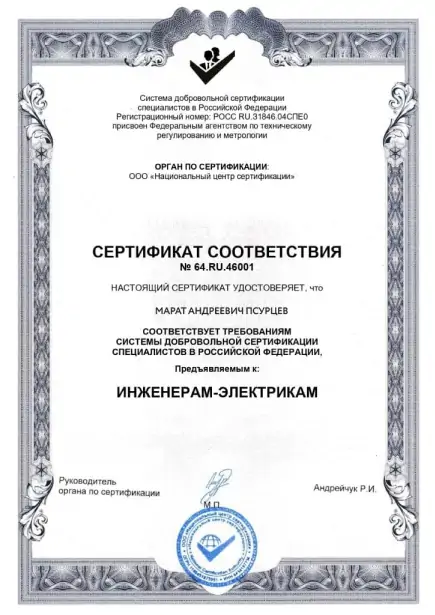 Мастер электрик Марат Андреевич Псурцев является квалифицированным специалистом Компании «МБР-Групп. Ежегодно проходит курсы подтверждения и повышения квалификации. Нашими клиентами Марат Андреевич Псурцев характеризуется как тактичный мастер своего дела. Оставьте свой номер телефона и Мастер электрик Марат Андреевич Псурцев Вам перезвонит.